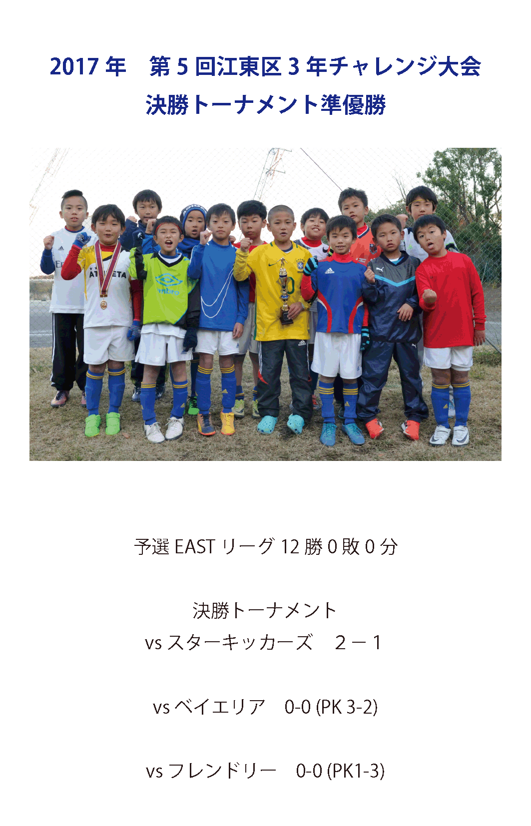 ☆江東区招待大会6年生優勝!4位パートだけどね。4年選手も交えた11人制よく頑張りました!新ユニが素敵なPHOTOはこちら