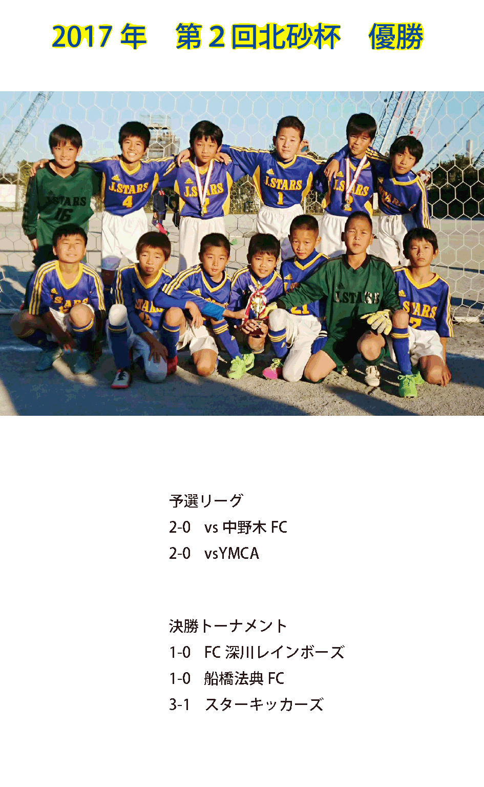 ☆11月4〜5日に『第5回JスターズFC杯』を行いました、ご参加いただきましたチームの皆様、ありがとうございました。予選結果 決勝結果