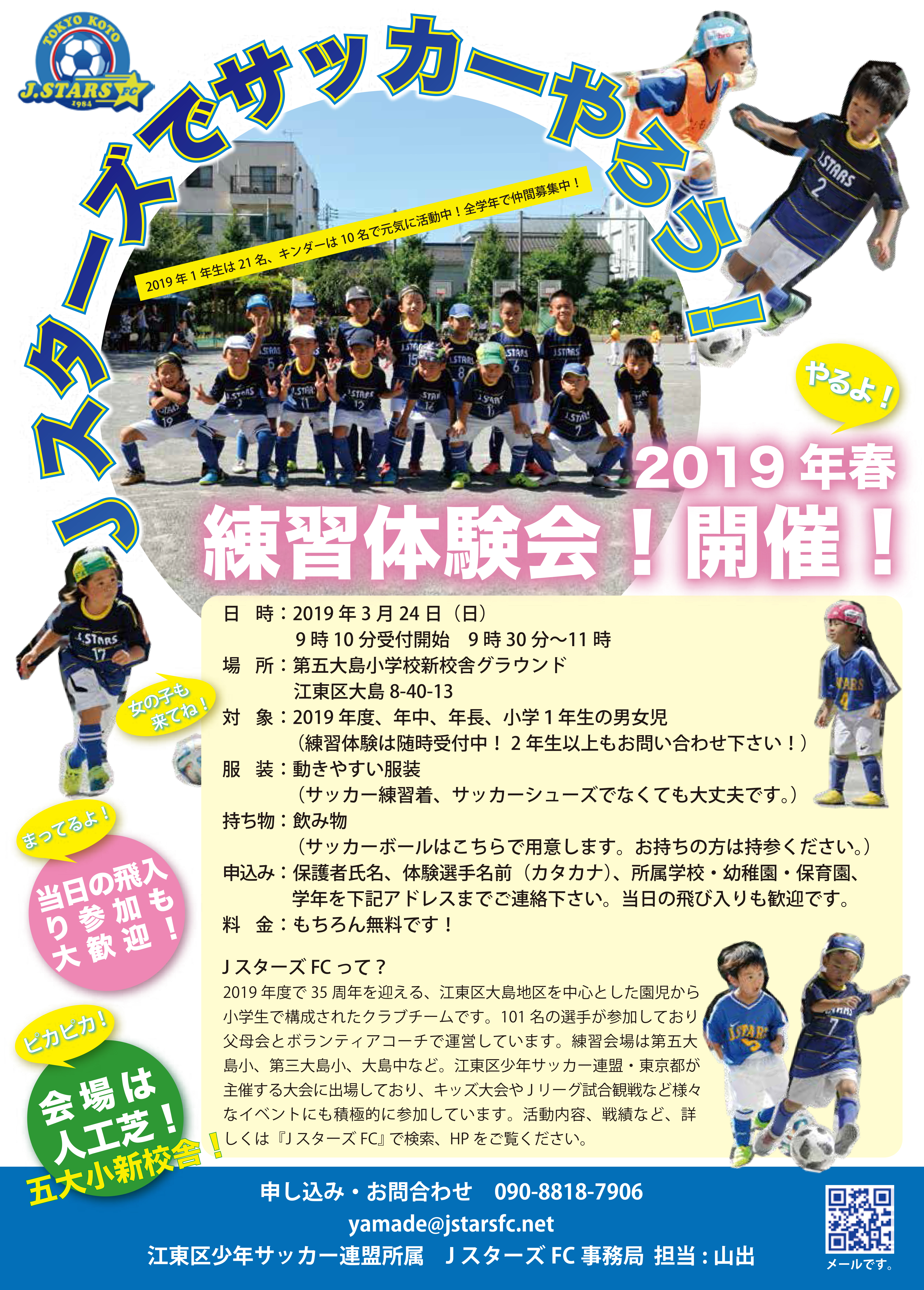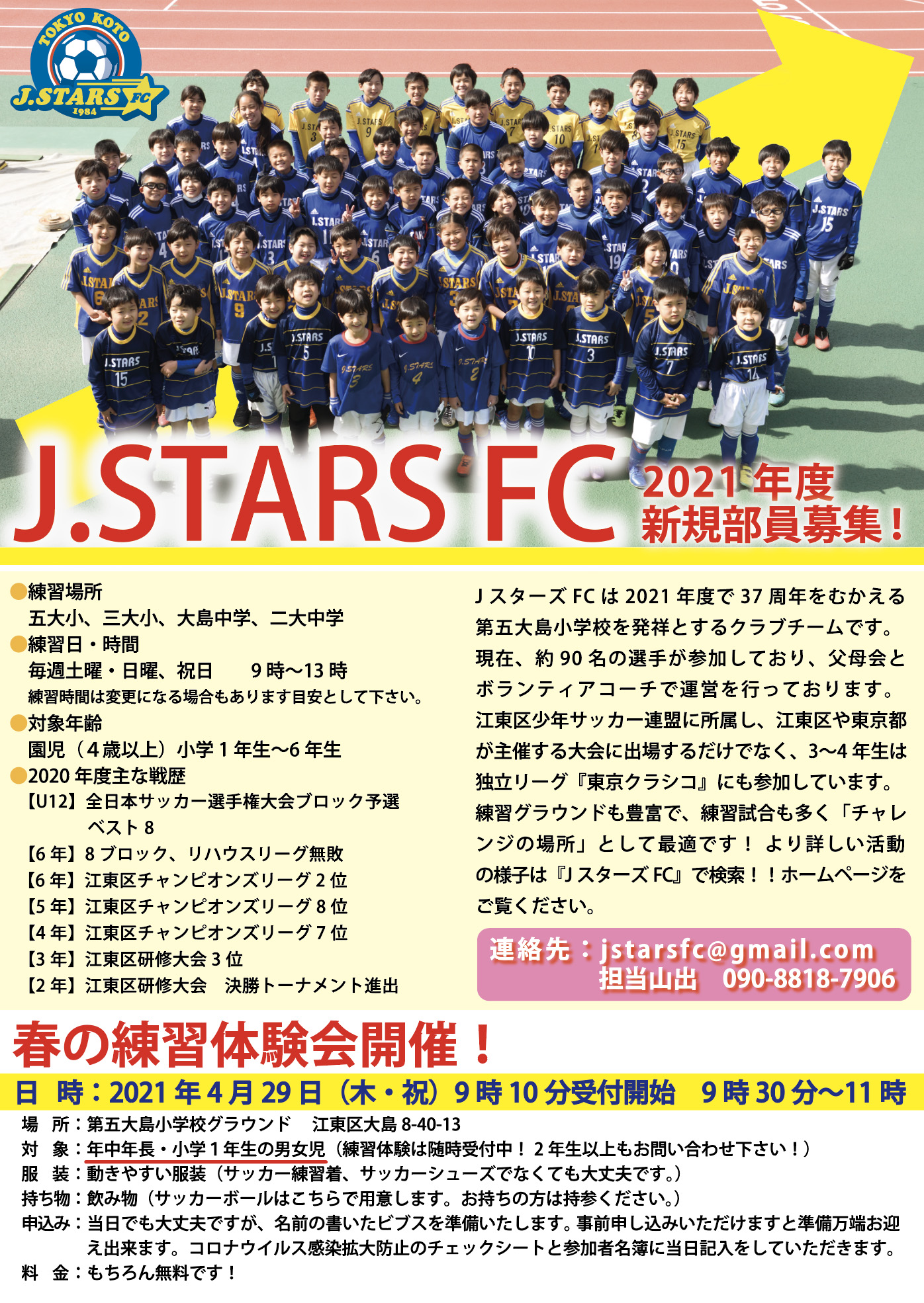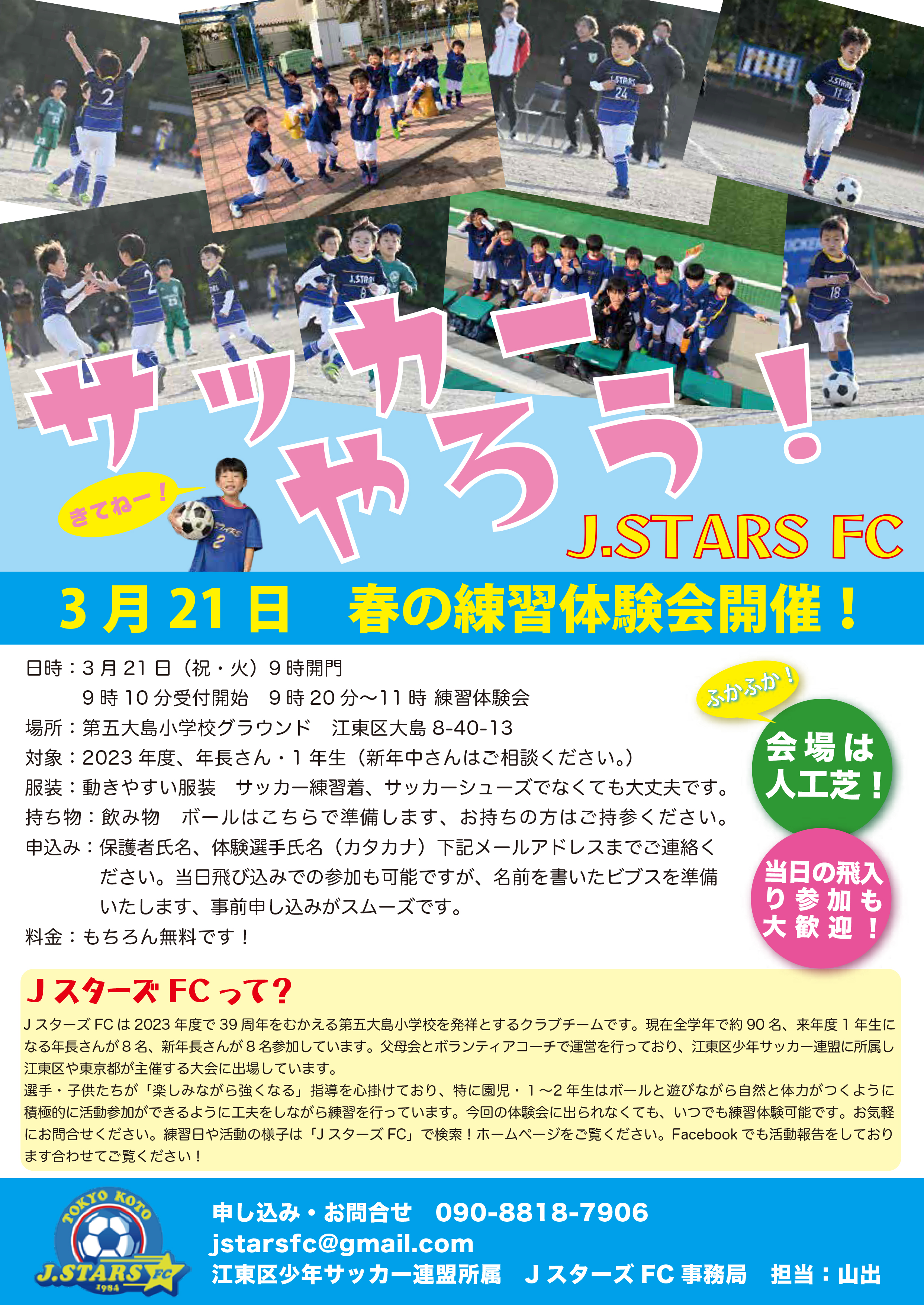 JスターズFCは江東区少年サッカー連盟に所属する小学生のサッカークラブチームです。