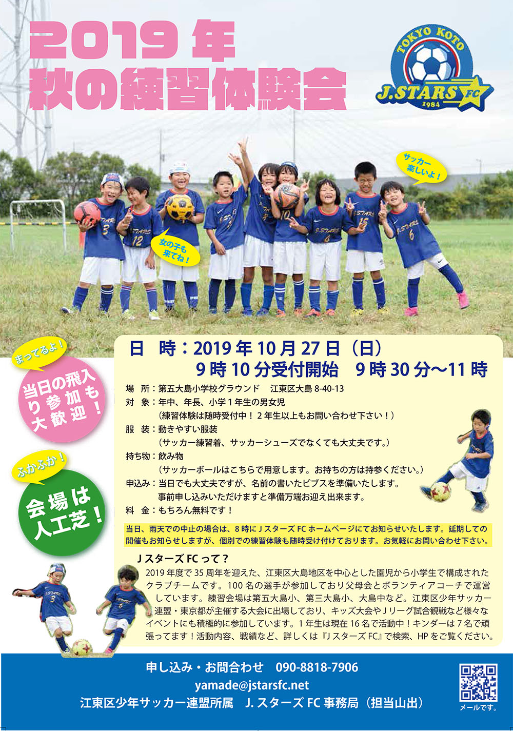 ☆秋の練習体験会10月27日開催決定!JスターズFCでサッカーを始めよう!フライヤーはこちら