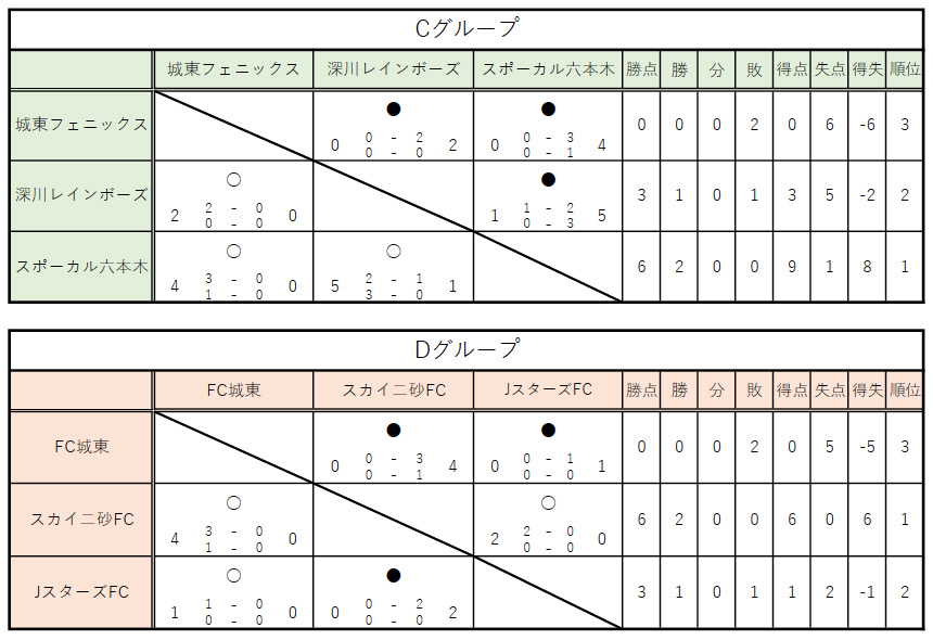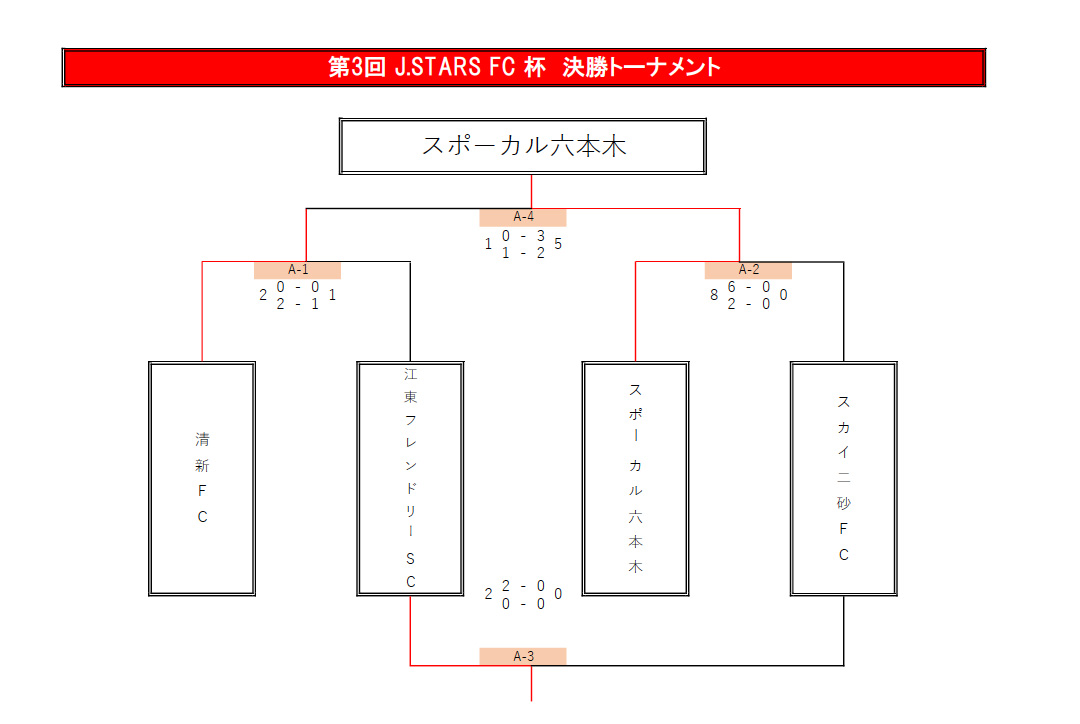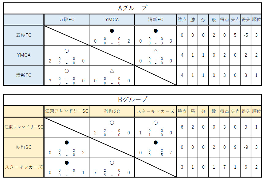 ☆J.STARS FC CUP 予選グループA 結果 グループB結果